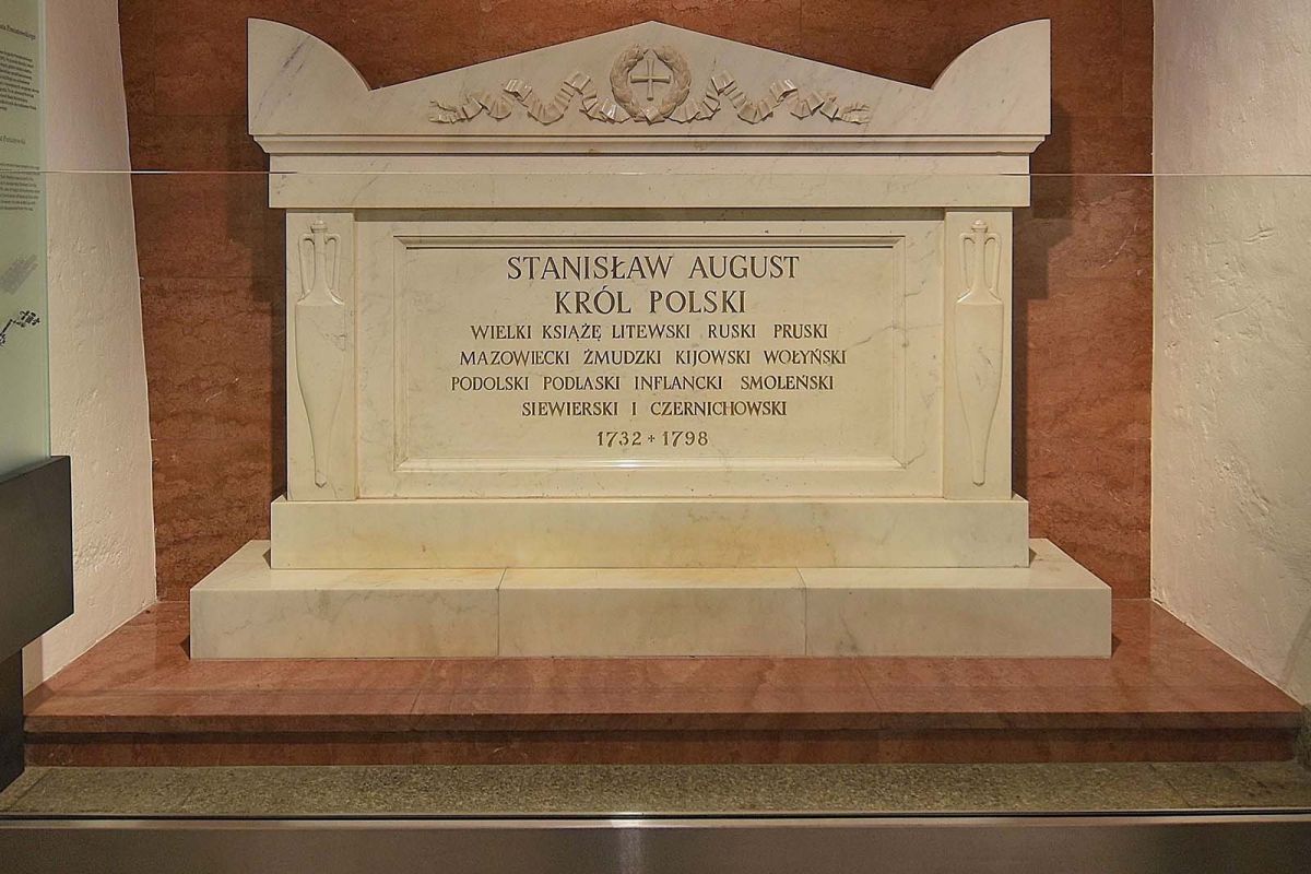 Tam „poczciwy nasz pan umarł na apopleksyję nerwową”, donosił świadek wydarzenia. Na złość matce imperator Rosji zarządził pozbawionemu królestwa monarsze obrzędy pogrzebowe w polskiej ornamentyce. Na katafalku wystawionym w kaplicy Marmurowego Pałacu zabalsamowane szczątki ubrano w mundur polskiego kawalerzysty z przepasaną niebieską wstęgą Orderu Orła Białego i narzuconym purpurowym płaszczem. Na skronie car osobiście nałożył koronę. W dniu pogrzebu długi kondukt dworzan i 18 tysięcy żołnierzy kroczyło ulicami rosyjskiej stolicy. Orszakowi, tuż obok trumny, przewodził imperator Paweł na koniu z obnażoną szpadą. Przy huku honorowych salw armatnich srebrną trumnę złożono w katolickim kościele św. Katarzyny. Niestety wody Newy podmywały później kościół. Kiedy w 1857 r. otwarto trumnę, wilgoć dokonała takiego spustoszenia, że prócz prochu nie znaleziono już nic więcej.