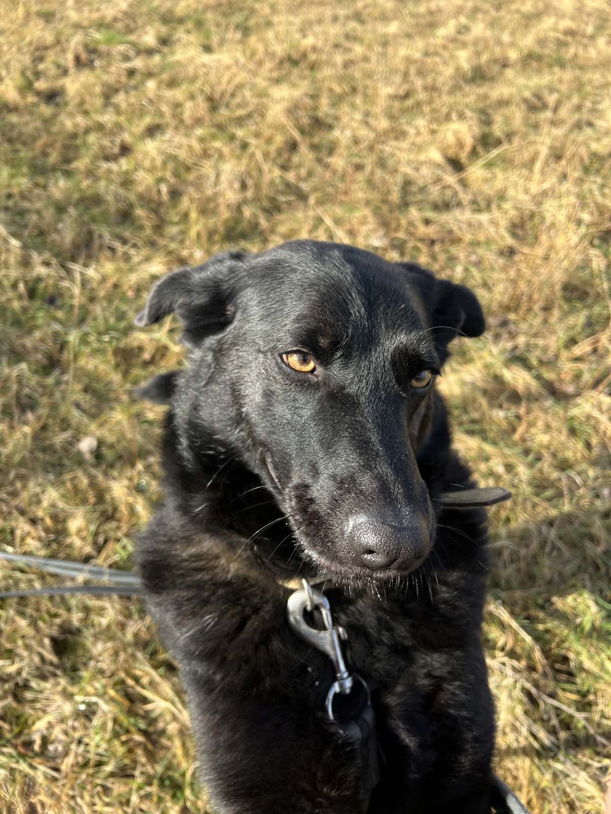 W następnym boksie jest Hermes; też szczeka podjudzony nagłym rozbudzeniem sąsiadów. Podchodzi do kratki, ucisza się, patrzy się na mnie z przekręconą główką. Uszy ma oklapnięte z przodu, wygląda jak kłapouszek. Sierść ma czarną z beżowymi przebłyskami na uszach, łapkach, przy brzuszku i na mordce. Patrzy na świat przyjaznymi oczyma. Jest już starszym pieskiem, chociaż nie widać tego po jego energicznym zachowaniu. Większość życia spędził na łańcuchu, robiąc kółka na jego długości, a potem trafił tutaj, do prostokątnego kojca. Ludzi uwielbia, inne psy; niekoniecznie. Chętnie podejdzie po smaczka, jeszcze chętniej, widząc wolontariusza ze smyczą w ręce; to jest dopiero radość!